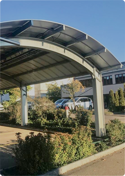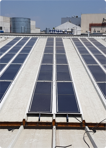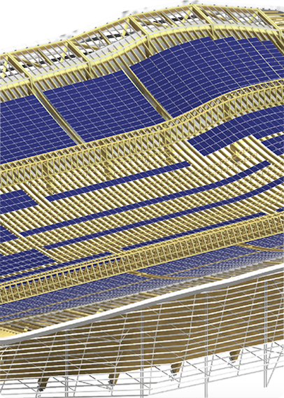Données essentielles : 2250 modules PHOTOWATT montés sur rails DOME SOLAR collés à la membrane EVALON, sous ATEX CSTB.ALPHASOLAR s'est positionné en consultant BIM et SOLAIRE PV pour modéliser, paramétrer, coordonner les travaux d'implantation du virtuel jusqu'à l'assistance des travaux réels.